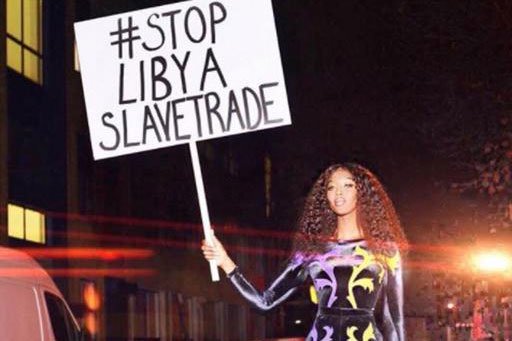 Ցուցապաստառի վրա, որը կրել է Նաոմին, գրված է եղել. «Դադարեցրե՛ք ստրկավաճառությունը Լիբիայում»։ Մոդելը կոչ է արել իր բաժանորդներին տարածել այդ լուսանկարը, եթե նրանք նույնպես աջակցում են իր դիրքորոշմանը։ Համացանցային օգտատերերը գնահատել են մոդելի նման քայլը։ Նրանք հույս են հայտնել, որ Նաոմին հաջողության կհասնի իր բարի գործում։