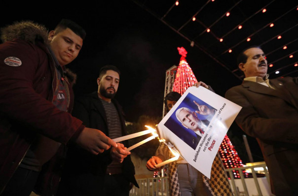 Բողոքի ակցիան անցել է Բեթղեհեմում՝ Սուրբ Ծննդյան տաճարի մոտակայքում: Ցուցարարներն այրել են նաև միջազգային բանակցություններում ԱՄՆ հատուկ ներկայացուցիչ Ջեյսոն Գրինբլաթի դիմանկարով պաստառը: