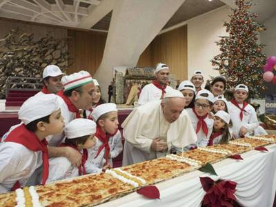 Հռոմի պապ Ֆրանցիսկոսը նշել է իր ծննդյան օրը: Բնականաբար, նա այս օրը հատուկ կերպ էր տոնում` Պոլ VI սրահում 4 մետրանոց պիցցա հյուրասիրելով Վատիկանի մանկական հիվանդանոցի երեխաներին, հաղորդում է The Independent-ը: Գործակալությունը նաեւ տեղեկացնում է, որ Հռոմի պապ Ֆրանցիսկոսը համոզում էր երեխաներին ուտել պատրաստված պիցցայի ամբողջ 4 մետրը(13 ֆուտ) առանց մնացորդի՝ ասելով, որ դա կօգնի իրենց հասակ առնել: