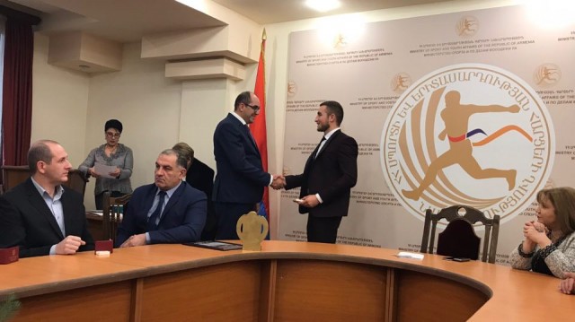 Այսօր Սպորտի և երիտասարդության հարցերի նախարարության կողմից Հայաստանի Կիոկուշին կարատեի Ֆեդերացիայի մարզիկ Հովհաննես Սարգսյանին շնորհվել է ՀՀ միջազգային կարգի սպորտի վարպետի կոչում: Նշենք, որ կարատեի ասպաերեզում սա առաջին դեպքն է, երբ հայ մարզիկն արժանանում է այսպիսի պարտավորեցնող կոչման: Վստահ ենք, որ Հովհաննես Սարգսյանի այս վառ օրինակը մեր ֆեդերացիայի մյուս մարզիկներին ևս կտանի նման պատվո ճանապարհով: Հովհաննես Սարգսյանը հանդիսանում է ինչպես Հայաստանի, այնպես էլ աշխարհի մասշտաբով կարատեի լավագույն մարզիկներից մեկը: Մեծ հույսեր ունենք, որ ապրիլի 7-8-ը Հայաստանում կայանալիք Եվրոպայի առաջնության շրջանակներում մեր մարզիկը բարձր կպահի հայրենիքի պատիվը՝ գրավելով բարձր հորիզոնական: