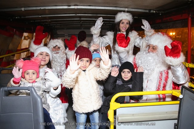 Տոնական երթուղու այցելուների համար հաճելի անակնկալ էր նախապատրաստված. նրանց դիմավորել և ուղեկցել են Ձմեռ պապն ու Ձյունանուշը: Ավտոբուսը շրջել է տոնական Երևանի փողոցներով՝ այցելուներին ներկայացնելով մայրաքաղաքի լուսավորված և զարդարված տեսարժան վայրերը: Երթուղու ընթացքում ներկաների բարձր տրամադրությունն ապահովել է ամանորյա ուրախ երաժշտությունը:
