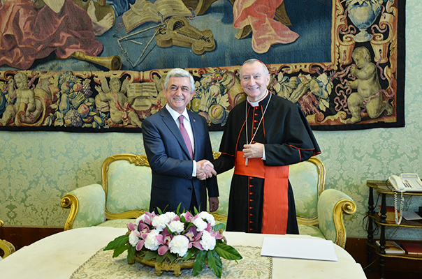 Նախագահ Սարգսյանը բարձր է գնահատել Սուրբ Աթոռի պետական քարտուղար Պիետրո Պարոլինի գործունեությունը, որի շնորհիվ նաև, Նախագահի գնահատմամբ, նորովի ամրապնդվեց Վատիկանի դերը միջազգային ասպարեզում՝ որպես խաղաղության հաստատման, հանդուրժողականության, փոխըմբռնման և մարդու իրավունքների պաշտպանության դրոշակակիր: