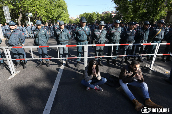 Բաղրամյան պողոտայի մոտ ցուցարարները շարք են կազմել: Այս պահին նստած են Բաղրամյան 1 հասցեում, և դեռ չկան նախանշաններ, որ փորձում են շարժվել դեպի Բաղրամյան փողոց: