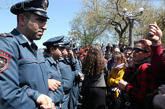 «Նախօրեին մայրաքաղաքի բժշկական կենտրոններից ահազանգ էր ստացվել, որ բուժօգնություն ստանալու նպատակով իրենց են դիմել թվով 37 քաղաքացի և 14 ոստիկան, որոնք տարբեր աստիճանի մարմնական վնասվածքներ են ստացել ապրիլի 16-ին Երևան քաղաքի Բաղրամյան պողոտայում ՀՀ Աժ պատգամավոր Նիկոլ Փաշինյանի կազմակերպած հավաքի մասնակիցների կողմից Ոստիկանության ծառայողների պատնեշը ճեղքելու փորձերի ընթացքում: