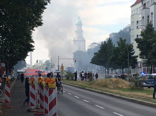 Այս մասին հայտնում են տեղական լրատվամիջոցները հղում տալով ականաատեսներին: Արտակարգ իրավիճակի ծառայությունները ժամանել են Ֆրիդրիխշտայն հրապարակ, ուր այրվում է բեռնատար, մանրամասները ճշտվում են: