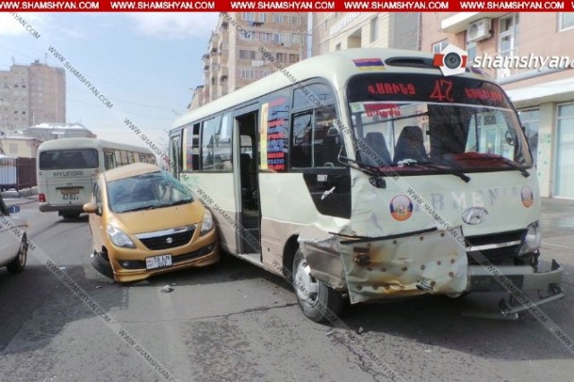 Ինչպես ավելի վաղ հայտնել էինք, այսօր առավոտյան Երևանում։ Ժամը 10։35-ի սահմաններում ավտովթար էր տեղի ունեցել. Սարկավագի փողոցում բախվել են Suzuki և Hyundai մակնիշի թիվ 47 երթուղին սպասարկող մարդատար ավտոբուսը: