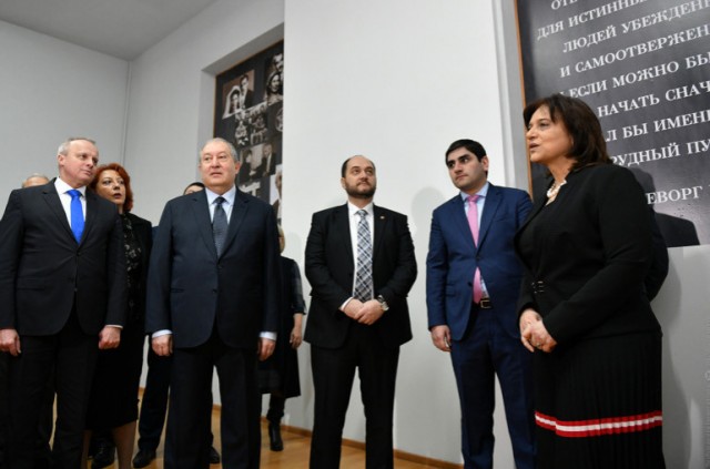 Հանրապետության նախագահ Արմեն Սարգսյանն այսօր Վ. Բրյուսովի անվան պետական լեզվահասարակագիտական համալսարանում մասնակցել է լեգենդար հետախույզներ Գոհար և Գևորգ Վարդանյանների անվան լսարանի բացման արարողությանը։