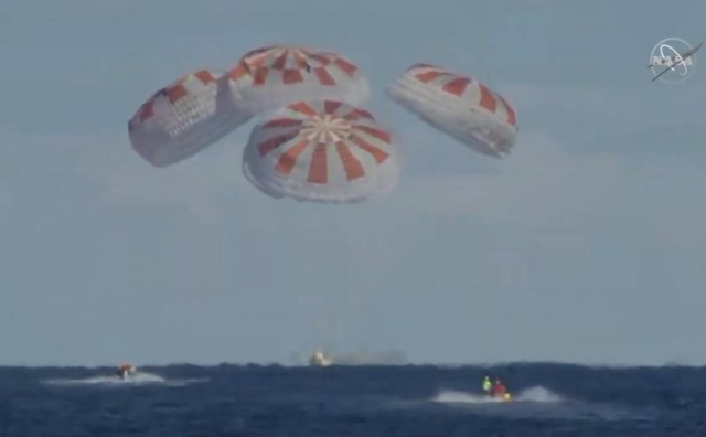 Ամերիկյան Crew Dragon տիեզերանավը հաջողությամբ վայրէջք է կատարել Ատլանտյան օվկիանոսում, տեղեկացնում է Life-ը։ Հեռարձակումն իրականացրել է NASA գործակալությունն իր Youtube ալիքում։Հետագծի վերջին հատվածում սարքին ուղեկցել է NASA ինքնաթիռը։ Վայրէջքի շրջանում SpaceX ընկերության տիեզերանավին սպասում էր փրկարարական նավը։ Նախօրեին, 08.45-ին այն վայրէջք կատարեց Ատլանտյան օվկիանոսում՝ ամերիկյան Ֆլորիդա նահանգի ափերից 360 կմ հեռավորության վրա։