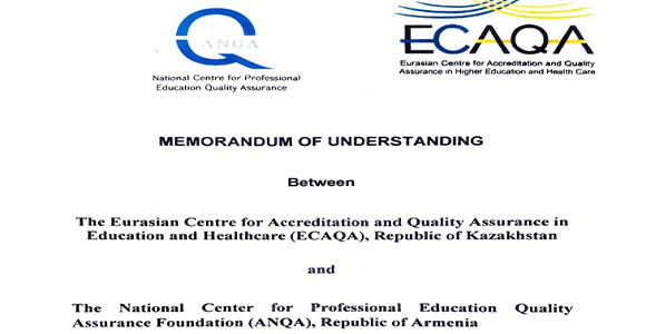 Մասնագիտական կրթության որակի ապահովման ազգային կենտրոնը (ՈԱԱԿ, ՀՀ) և Կրթության և առողջապահության ոլորտում հավատարմագրման և որակի ապահովման եվրասիական կենտրոնը (ECAQA, Ղազախստանի Հանրապետություն) փոխըմբռնման հուշագիր են կնքել, որը կոչված է ապահովելու երկու գործակալությունների համագործակցությունը բժշկական կրթության որակի ապահովման ոլորտում։