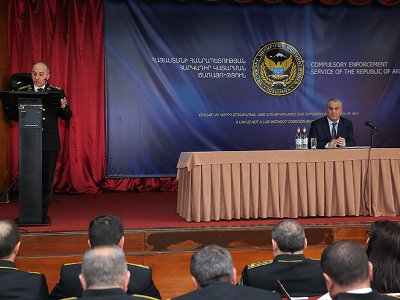 Ս/թ ապրիլի 1-ին Հարկադիր կատարման ծառայությունում քննարկվել և ամփոփվել են Ծառայության 2019 թվականի 1-ին եռամսյակի գործունեության արդյունքները: Հրավիրված աշխատանքային ամփոփիչ խորհրդակցությունը վարել է ՀՀ գլխավոր հարկադիր կատարող, արդարադատության գնդապետ Հակոբ Հակոբյանը: Խորհրդակցության ընթացքում, ըստ սահմանված օրակարգի, Ծառայության տեսչական և վերլուծական բաժնի պետ Լևոն Բալյանը ներկայացրել է զեկույց՝ հաշվետու ժամանակահատվածում Ծառայության կողմից գումարների բռնագանձումների, կատարողական վարույթների կարճումների ու ավարտների վերաբերյալ: 2019 թվականի 1-ին եռամսյակում Ծառայության կողմից բռնագանձվել է 7 342 274 541 ՀՀ դրամ, ինչը գերազանցել է 2018 թվականի ցուցանիշը շուրջ 29,32 %-ով: Հաշվետու ժամանակահատվածում ընթացք է տրվել 299 258 կատարողական վարույթների, այս ցուցանիշը նվազել է 2018 թվականի ցուցանիշի համեմատ 14,96%-ով : Մնացորդ կատարողական վարույթների թիվը կազմել է 31 765: Միաժամանակ նշված ժամանակահատվածում ֆիզիկական և իրավաբանական անձանցից ստացվել է 33 84 դիմում և գրություն, թեժ գիծ ծառայության կողմից ստացվել է 144 բողոք, իսկ Ծառայության արագ սպասարկման գրասենյակում սպասարկվել են 17 395 քաղաքացիներ: ՀՀ գլխավոր հարկադիր կատարողի և գլխավոր հարկադիր կատարողի տեղակալների կողմից կատարվել է թվով 10 քաղաքացու ընդունելություն: Ծառայության բաժինների պետերը ներկայացրել են առաջին եռամսյակի ընթացքում կատարված աշխատանքների արդյունքները, բաժիններում առկա խնդիրներն ու Ծառայության ղեկավարից ստացել կոնկրետ հանձնարարականներ: Ի թիվս կատարողական վարույթներին առնչվող այլ հարցերի՝ խորհրդակցության ընթացքում ՀՀ գլխավոր հարկադիր կատարողը պահանջել է Ծառայության բաժինների ղեկավարներից խստորեն պահպանել կատարողական վարույթների իրականացման ժամկետները, կարգադրել է լինել խիստ հետևողական աշխատանքային կարգապահության պահպանման հարցում, աշխատել բարձր պատասխանատվությամբ: ՀՀ գլխավոր հարկադիր կատարողն ամփոփելով խորհրդակցությունը Ծառայության ղեկավար անձնակազմին տվել է հանձնարարականներ՝ կապված առաջիկա աշխատանքների իրականացման հետ: