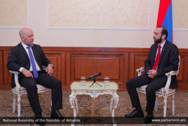 ՀՀ ազգային ժողովի նախագահ Արարատ Միրզոյանն ապրիլի 2-ին ընդունել է Հայաստանում Արգենտինայի Հանրապետության արտակարգ եւ լիազոր դեսպան Գոնսալո Ուռիոլաբեիտիային: Ինչպես տեղեկացրեցին ՀՀ ԱԺ լրատվության և հանրության հետ կապերի վարչությունից, ողջունելով դեսպանին` օրենսդիր մարմնի ղեկավարն ընդգծել է Հայաստանի հետաքրքրվածությունը լատինամերիկյան տարածաշրջանի երկրների, այդ թվում` Արգենտինայի հետ հարաբերությունների հետագա խորացմամբ: