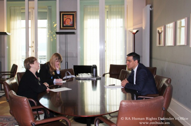 Հայաստանի Մարդու իրավունքների պաշտպանը հանդիպման ընթացքում ներկայացրել է իր գործունեության առաջնահերթությունները։ Մասնավորապես, քննարկվել է խոշտանգումների կանխարգելման, կանանց ու երեխաների իրավունքների, հոգեկան առողջության խնդիրներ ունեցող, հաշմանդամություն ունեցող անձանց իրավունքների պաշտպանության ուղղությամբ տարվող աշխատանքը և մի շարք այլ հարցեր: