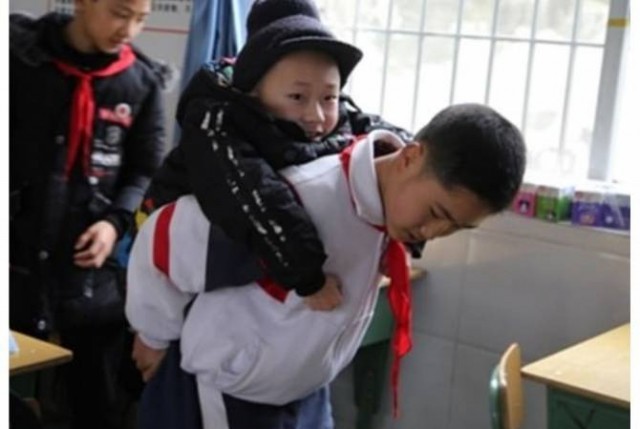 Այս պատմության մասին իմացվել է միանգամայն պատահականորեն: Նույնիսկ 12-ամյա Սյու Բինյանի մայրը չգիտեր, որ իր որդին ամեն օր օգնում է իր լավագույն ընկերոջը և նրան դպրոց տանում: Տղան չէր պարծենում դրանով, այլ պարզապես անում էր այն, ինչն, իր կարծիքով, պետք է աներ: Փոքրիկ հերոսը և նրա ընկեր Ջան Ցզեն ապրում են Չինաստանի Սիչուանի նահանգում: Ամեն օր նրանք միասին դպրոց են գնում, ուր Սյուն համադասարանցուն հասցնում է մեջքի վրա: Նա ինքը խոստովանում է, որ իր համար բնավ դժվար չէ դա անել, գրում է Daily Mail-ը: «Ես ավելի քան 40 կիլոգրամ եմ, իսկ Ջանն՝ ընդամենը մոտավորապես 25, և ես կարողանում եմ հեշտությամբ նրան բարձրացնել»,- ասում է նա: Ջանի վիճակի մասին հայտնի է դարձել, երբ նա ընդամենը չորս տարեկան էր: Բժիշկները նրա մոտ ախտորոշել էին մկանների հազվադեպ հիվանդություն՝ միասթենիա գրավիս (բառացիորեն՝ մկանային թուլություն): Տղան չի կարողանում ինքնուրույն քայլել, բայց, բարեբախտաբար, նման ընկեր ունի: Իհարկե, դա այնքան էլ դյուրին չէ, ինչպես կարող է թվալ առաջին հայացքից: Բայց տղաները հասցնում են, օրինակ, դասարանից մինչև զուգարան գնալ երեք րոպեում: Սյուն օգնում է ընկերոջը նաև կենցաղային գործերում. ջուր է լցնում շիշը կամ ուսուցչին փոխանցում տնային առաջադրանքները: Ապագայում նա ցանկանում է աշխատել որպես կամավոր և օգնել մարդկանց, հաղորդել է Life-ը: