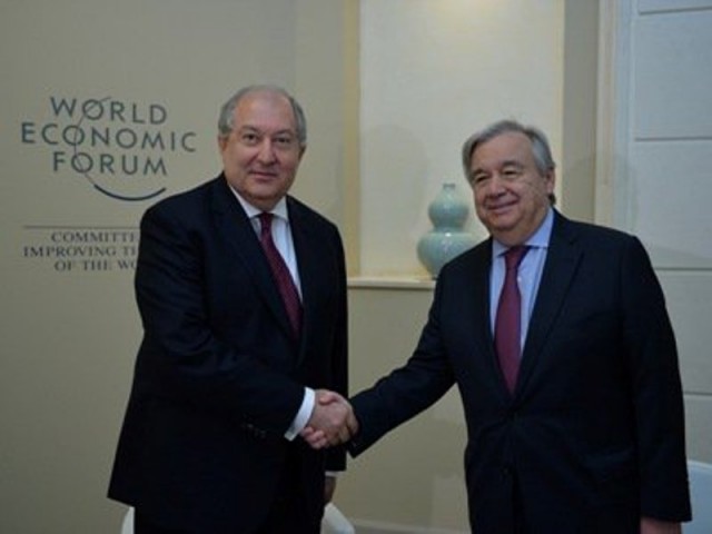 Համաշխարհային տնտեսական համաժողովի տարածաշրջանային ֆորումին մասնակցելու նպատակով Հորդանանի Հաշիմյան Թագավորությում գտնվող՝ Հայաստանի Հանրապետության նախագահ Արմեն Սարգսյանն այսօր՝ ապրիլի 6-ին, հանդիպում է ունեցել Միավորված ազգերի կազմակերպության գլխավոր քարտուղար Անտոնիո Գուտերեշի հետ։
