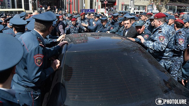 Կարմիր բերետավորները հրեցին ձեռքերը վերև պարզած ցուցարարներին: Այս պահին Տիգրան Մեծ պողոտայում երթևեկությունը կաթվածահար վիճակում է: Ակցիայի մասնակիցները դուրս են եկել փողոց: