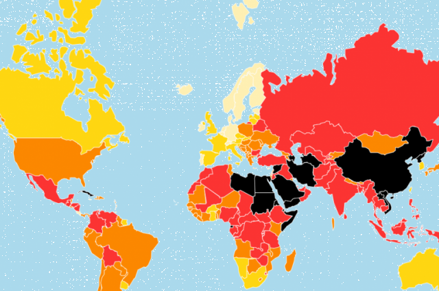Վատագույն տասնյակում են ներառվել Լաոսը, Սաուդյան Արաբիան, Ջիբութին, Սիրիան, Սուդանը, Վիետնամը, Չինաստանը, Էրիթրեան, Հյուսիսային Կորեան, Թուրքմենստանը: