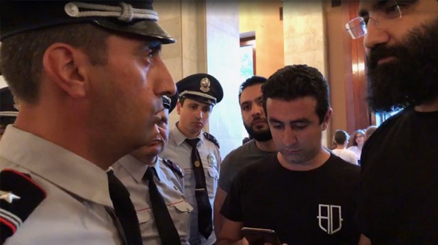 Քիչ առաջ ոստիկանները «Արամ Խաչատրյան» համերգասրահից բերման են ենթարկել «Ադեկվադ» նախաձեռնության անդամներին, այդ թվում՝ Արթուր Դանիելյանին և Կոնստանտին Տեր-Նակալյանին։