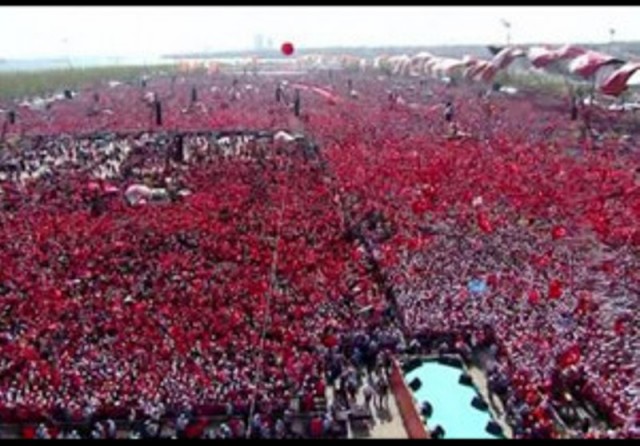 Ինչպես նշում է Hurriyet-ը՝ Էրդողանը ամբոխին հայտնել է, որ հանրահավաքը հսկայական էկրաններով ուղիղ հեռարձակվելու է տարբեր ալիքներով։