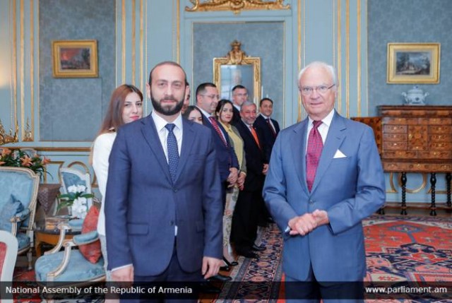 Պաշտոնական այցով Շվեդիայի Թագավորությունում է գտնվում ՀՀ Ազգային ժողովի նախագահ Արարատ Միրզոյանի գլխավորած պատվիրակությունը: Այցի շրջանակում հունիսի 11-ին խորհրդարանի պատվիրակությունը հանդիպել է Շվեդիայի թագավոր Նորին Մեծություն Կարլ XVI Գուստավի հետ: