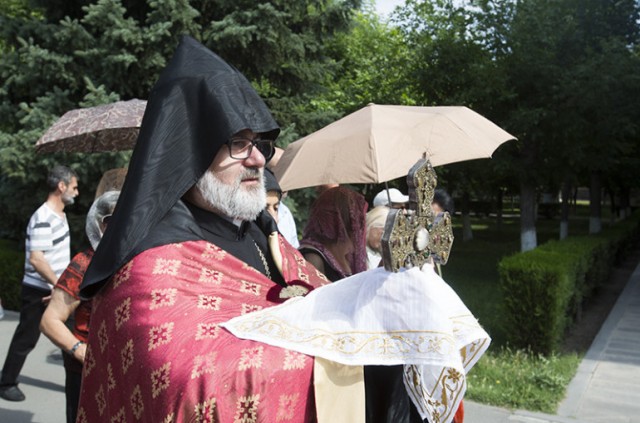 Ս. Շողակաթ վանքի առջև թափորը դիմավորել են բազմաթիվ ուխտավորներ` Մայր Աթոռի Վանորեից տեսուչ Գերաշնորհ Տ. Արտակ եպիսկոպոս Տիգրանյանի գլխավորությամբ:
