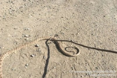 Հուլիսի 4-5-ն ԱԻՆ ՓԾ Ճգնաժամային կառավարման ազգային կենտրոնում ահազանգեր են ստացվել հանրապետության տարբեր տարածքներում նկատված օձերի վերաբերյալ: Մասնավորապես՝ Երեւան քաղաքում, Վայոց ձորի մարզի Արին եւ Արագածոտնի մարզի Արագածոտն գյուղերում: Դեպքի վայր ժամանած փրկարարները բռնել են 2 գյուրզա, 1 սահնօձ տեսակի օձ եւ տեղափոխել անվտանգ տարածք: