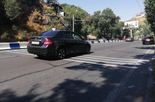 «Եվս մեկ նորամուծություն Երևանի ճանապարհներին։ Մյասնիկյան պողոտայում առաջին անգամ անհարթ գծանշում է արվել, որ վարորդները ավելի ուշադիր լինեն՝ մոտենալով նոր տեղադրած լուսացույցին»,– գրել է նա։