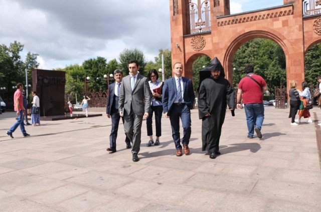 Առաջնորդանիստ Սուրբ Պայծառակերպություն եկեղեցում Գլխավոր հանձնակատարը մոմ վառեց, որից հետո այցելեց Սուրբ Գրիգոր Նարեկացու անվան վարժարան, որն իր գործունեությունը կսկսի սեպտեմբերից: Գլխավոր հանձնակատարը ծանոթացավ նաև եկեղեցու «Տապան» թանգարանի ցուցանմուշներին և «Գավիթ» թատրոնի գործունեությանը: