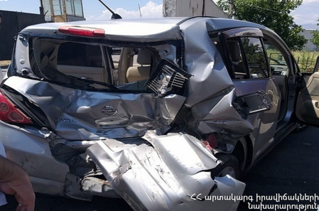 Nissan Tiida մակնիշի ավտոմեքենայի վարորդը և ուղևորը՝ Գ.Տ.-ն (ծնված 1972 թ.), տարբեր բնույթի մարմնական վնասվածքներով հոսպիտալացվել են Սուրբ Գրիգոր Լուսավորիչ ԲԿ, որտեղ բժիշկները տուժածների վիճակը գնահատել են բավարար: