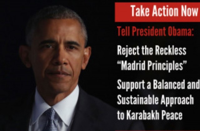ԱՄՆ-ի Հայ դատի հանձնախմբի գրասենյակը (ANCA)տարածել է նոր հաղորդագրություն, որում կոչ է անում Միացյալ Նահանգների նախագահ Բարաք Օբամայի վարչակազմին աջակցել Լեռնային Ղարաբաղի հակամարտության` ժողովրդավար ճանապարհով ինքնորոշման համամարդկային գաղափարների ու մարդու հիմնարար իրավունքների վրա հիմնված կայուն լուծմանը: