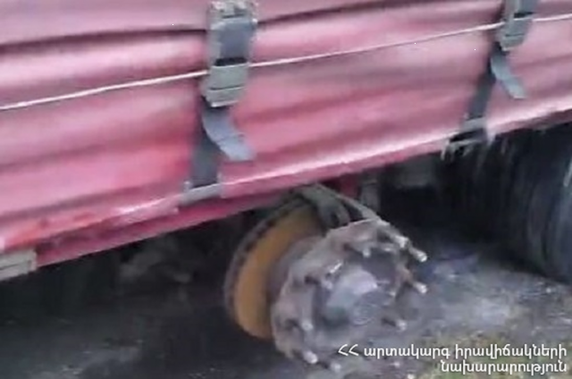 «DAF» մակնիշի (վարորդ՝ Վ.Կ.) կցորդիչով բեռնատարի անիվի հանգույցում առաջացած հրդեհի պատճառով այրվել է կցորդչի ծածկը՝ մոտ 0.5 քմ հատված:
