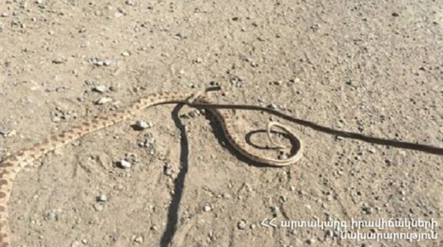 Օգոստոսի 8-10-ն ԱԻՆ ՓԾ Ճգնաժամային կառավարման ազգային կենտրոնում ահազանգեր են ստացվել հանրապետության տարբեր տարածքներում նկատված օձերի վերաբերյալ: Մասնավորապես` Երևան և Արարատի մարզի Մասիս քաղաքներում: Դեպքի վայր ժամանած փրկարարները բռնել են 1 գյուրզա, 1 շահմար տեսակի օձ և տեղափոխել անվտանգ տարածք: