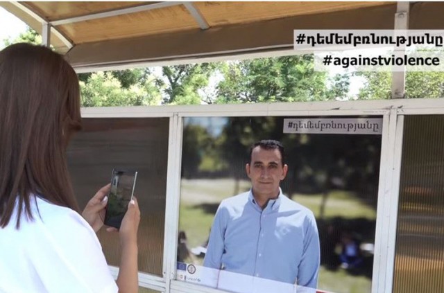 Երևան քաղաքի կանգառներում տեղադրվել են #դեմեմբռնությանը կոչով վահանակներ հայտնի դերասան Մկրտիչ Արզումանյանի մասնակցությամբ։ Այս մասին տեղեկացնում է ՀՀ մարդու իրավունքների պաշտպանի աշխատակազմի հանրային կապերի բաժինը: