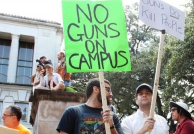 Թեքսասի համալսարանի մի քանի հարյուր ուսանողներ Օսթինում բողոքի ակցիա են կազմակերպել նոր օրենքի դեմ, որը թույլ է տալիս ուսանողական ավան ու լսարան բերել թեթեւ հրազենային զենք, հայտննում է BBC –ի ռուսական ծառայությունը: