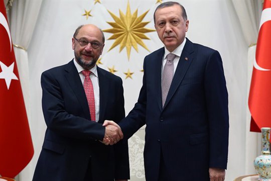 Թուրքական Dünya Bülteni լրատվական կենտրոնի փոխանցմամբ՝ Թուրքիայի նախագահ Ռեջեփ Էրդողանը նախագահական նստավայրում հանդիպել է Եվրախորհրդարանի նախագահ Մարտին Շուլցի հետ։