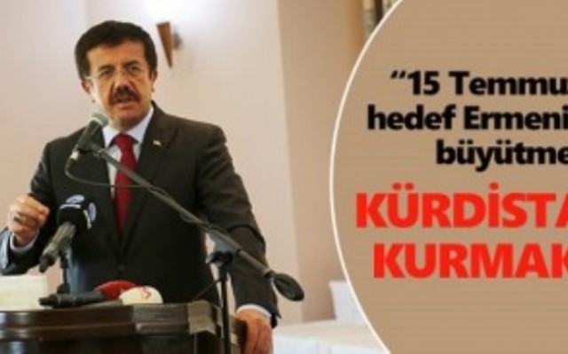Թուրքիայի էկոնոմիկայի նախարար Նիհաթ Զեյբեքչին, խոսելով հուլիսի 15-ին Թուրքիայում տեղի ունեցած ռազմական հեղաշրջման փորձի մասին, փորձել է բացահայտումներ անել դրա իրական նպատակի մասին:
