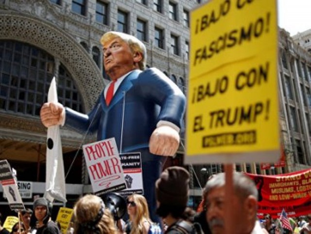 «Ռեյթերսի» փոխանցմամբ, Լոս Անջելեսի կենտրոնում կիրակի տեղի ունեցած երթին մասնակցել է մի քանի հարյուր մարդ, մեծ մասամբ լատինամերիկացիներ եւ մեքսիկացիներ: Նրանց ձեռքին եղել են կարգախոսներ՝ «Տապալել Թրամփին» գրությամբ: Ցուցարարները հանդես են եկել ներգաղթային բարեփոխումներ իրականացնելու եւ արտաքսումից հրաժարվելու օգտին: