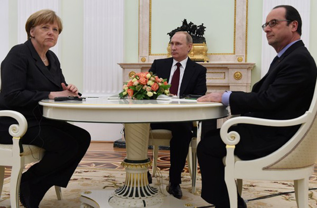 Գերմանիայի կանցլեր Անգելա Մերկելը և Ֆրանսիայի նախագահ Ֆրանսուա Օլանդը ՌԴ նախագահ Վլադիմիր Պուտինի հետ հեռախոսազրույցում կարևորել են Մինսկի համաձայնագրերի իրականացումը և պայմանավորվել ակտիվացնել խորհրդատվությունները տարբեր ձևաչափերում, հայտնում է Կրեմլը: