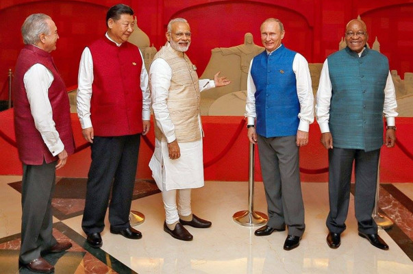 ԲՐԻԿՍ-ի անդամ երկրների (Բրազիլիա, Ռուսաստան, Հնդկաստան, Չինաստան և ՀԱՀ) առաջնորդները խմբակային լուսանկար են արել` հնդկական ազգային տարազներով: