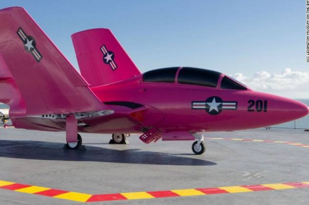 Ամերիկյան F9F Cougar կործանիչը՝ ներկված վառ վարդագույն երանգով, ցուցադրության է հանվել «Լեքսինգթոն» ավիակրի վրա՝ տեխասյան Կորպուս Քրիստի քաղաքում: