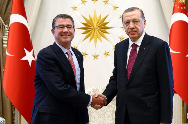 Թուրքիայի նախագահ Ռեջեփ Թայիփ Էրդողանը հանդիպել է ԱՄՆ ռազմական գերատեսչության ղեկավար Էշթոն Քարթերի հետ, այս մասին գրում է թուրքական «Անադոլու» լրատվական գործակալությունը: Անկարայում դռնփակ հանդիպումը տևել է 30 րոպե: Հիշեցնենք, որ Թուրքիայի պաշտպանության նախարար Ֆիքրի Ըշըքը հայտարարել էր, որ իրենք արդեն ԱՄՆ-ի հետ համաձայնություն են ձեռք բերել, ըստ որի թուրքական օդուժը կմասնակցի Մոսուլի ազատագրմանն ԱՄՆ-ի գլխավորած կոալիցիոն ուժերի կազմում: