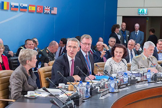 Մատնանշելով, որ Ռուսաստանը մեծացնում է ռազմական ներուժը, գլխավոր քարտուղարը նշել է՝ «մենք տեսել ենք, որ նրանք պատրաստ են ռազմական ուժ կիրառել հարևանների դեմ՝ Ղրիմ, Ուկրաինա, ինչպես նաև Վրաստան»։