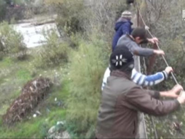 Ադրբեջանի Խաչմազի շրջանում աշակերտները եւ ուսուցիչները ստիպված են գյուղի դպրոց գնալ խողովակի վրայով: