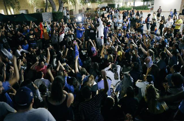 Հաղորդվում է, որ ուսանողները հավաքվել են Սանտա Բարբարայի Կալիֆոռնիայի համալսարանի մոտ՝ վանկարկելով. «Իմ նախագահը չէ»։