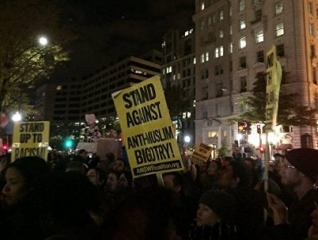 Սպիտակ տան հարեւանությամբ նորընտրիր նախագահ Դոնալդ Թրամփի դեմ ցույցին մասնակցողները վիրավորանքներ են վանկարկել ոստիկանների հասցեին, իրավապահների հետ բախում է գրանցվել, ինչի արդյունքում մեկ մարդ է ձերբակալվել: