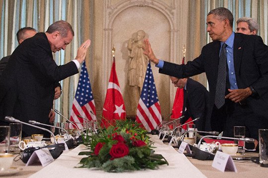 «Մենք քննարկել ենք դրանք նախագահ Օբամայի և փոխնախագահ Բայդենի հետ։ Նրանք այդ իրավիճակում հայտնվել են ոչ բարձունքի վրա և չեն կարողացել լրջորեն մոտենալ այդ հարցերին։ Դա մեզ համար բավականին մտահոգիչ է»,-ասել է Էրդողանը։ Նա նաև նշել է, որ «հիասթափված է»՝ կապված Սիրիայի հարցով ԱՄՆ դիրքորոշման հետ։