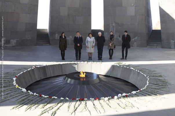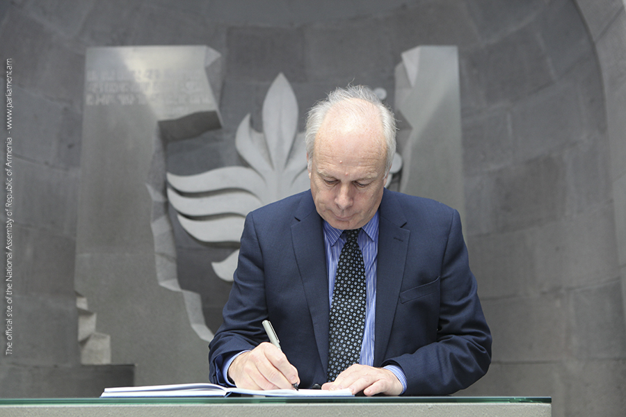Ինչպես տեղեկացնում է ՀՀ ԱԺ հասարակայնության և տեղեկատվության միջոցների հետ կապերի վարչությունը, եվրոպացի բարձրաստիճան հյուրը ծաղիկներ է խոնարհել անմար կրակի մոտ եւ լռությամբ ու խոնարհումով հարգել Սուրբ նահատակների հիշատակը։