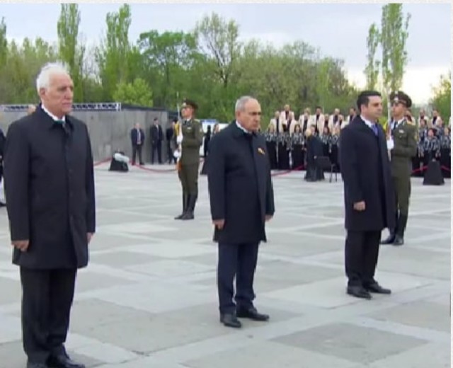 ՀՀ վարչապետ Նիկոլ Փաշինյանը, ԱԺ նախագահ Ալեն Սիմոնյանի ու ՀՀ նախագահ Վահագն Խաչատուրյանի հետ այցելեց Ծիծեռնակաբերդի հուշահամալիր։ Նրանք ծաղիկներ խոնարհեցին ցեղասպանության զոհերի հիշատակին։ Հիշեցնենք, որ այսօր լրացնում է Հայոց ցեղասպանության 111-րդ տարելիցը։ Այդ կապակցությամբ իր ուղերձում Փաշինյանն ասել է․ «Մեր Գիտությունների ազգային ակադեմիայի հրատարակած Հայոց պատմության հատորյակում է հիմնավոր կերպով արձանագրված, որ Մեծ Եղեռնը այլոց թվում հայ ժողովրդին միջազգային խարդավանքների մեջ ներքաշելու գործելակերպի հետեւանք է, գործելակերպ, որը մեկնարկեց 19–րդ դարի կեսերից եւ իր ողբերգական կուլմինացիային հասավ 1915 թվականին»։