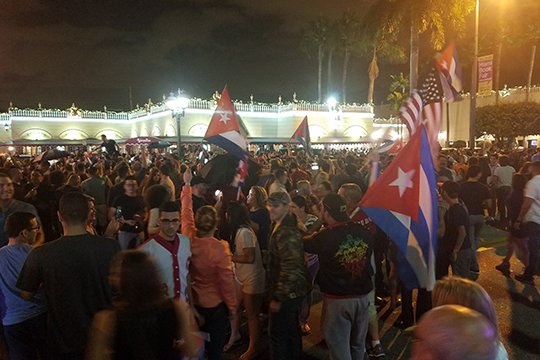 Ծագումով կուբացիները, ովքեր բնակվում են ամերիկյան Մայամի քաղաքում, դուրս են եկել փողոցներ և հրավառություն իրականացրել՝ Կուբայական հեղափոխության առաջնորդ Ֆիդել Կաստրոյի մահվան առիթով։ Այս մասին հայտնում է The Hollywood Reporter-ը։