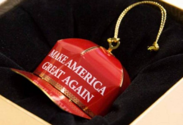 ԱՄՆ-ի նախագահ ընտրված Դոնալդ Թրամփի շտաբի պաշտոնական առցանց-խանութը նոյեմբերի 23-ին սկսել է տոնածառի զարդեր վաճառել հանրապետականի նախընտրական կարգախոսով: Այս մասին հաղորդվում է քաղաքական գործչի ընտրական շտաբի կայքում:
