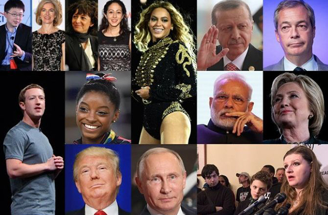 Ցանկում տեղ են գտել 11 քաղաքական գործիչներ, գիտնականներ, գործարարներ, մարզիկներ, հասարակական գործիչներ և շոու- բիզնեսի աստղեր: Նրանց թվում են՝ Ռուսաստանի նախագահ Վլադիմիր Պուտինը, Թուրքիայի ղեկավար Ռեջեփ Թայիփ Էրդողանը, Միացյալ Նահանգների ընտրված նախագահ Դոնալդ Թրամփը, ԱՄՆ-ում պետության ղեկավարի ընտրությունները տանուլ տված Հիլարի Քլինթոնը, Հնդկաստանի վարչապետ Նարենդրա Մոդին, ինչպես նաև Facebook-ի հիմնադիր Մարկ Ցուկերբերգը, երգչուհի Բեյոնսեն և այն մարդկանց խումբը, ովքեր հայտնել են ԱՄՆ-ի Ֆլինթ քաղաքի թունավոր ջրի վերաբերյալ տեղեկատվությունը: